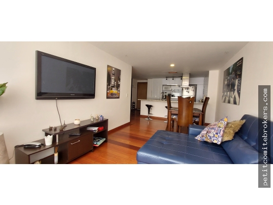 Pisos en madera granadillo en zona social y alcobas; baños y cocina en baldosa.